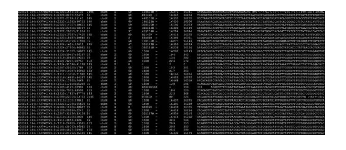 ok,背景的介绍就先到此为止了,我们回归主题。下面这个图是我从一份刚刚完成比对的bam文件中截取出来的内容: